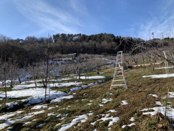 2017年4月3日 葉とらずりんご通信 ちょとした林 こんにちは従業員の村田です 今回は剪定の時に凄い木を見つけたのですがそれがこれです。 この大半が徒長枝という枝でリンゴがならなく、又この枝にリンゴがなる様にするにわ、とても手間と時間がかかるので剪定バサミで切るのですが、なかには物凄く太い枝とかも有り切るのが大変なのです、ただ終わった後のこの木 を見た時はとてもスッキリします。