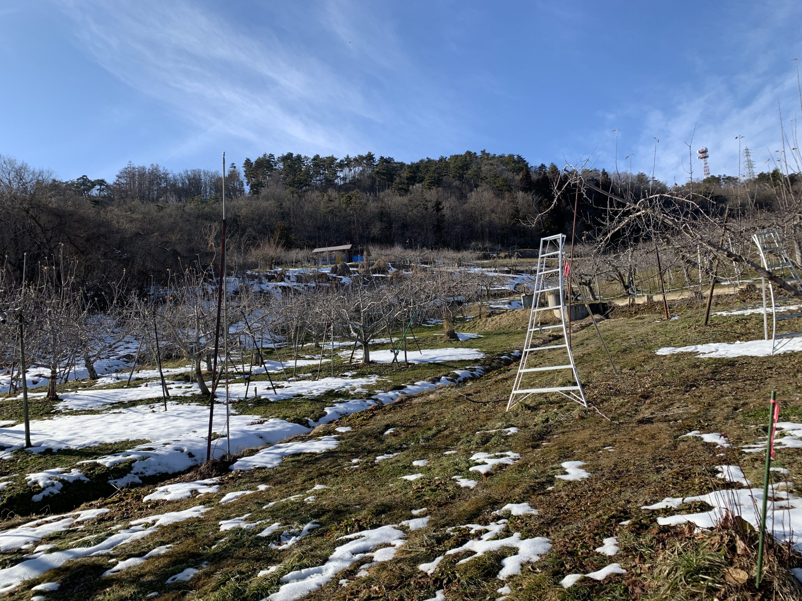 先週こちらでは雪が降りまだその雪が解けていない状態の中、剪定作業をしています。