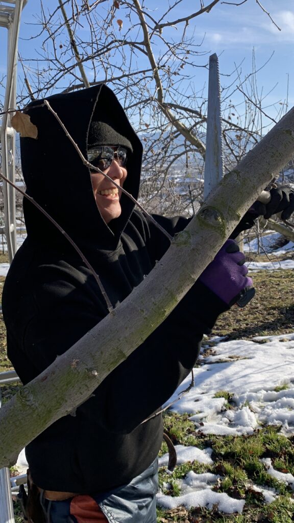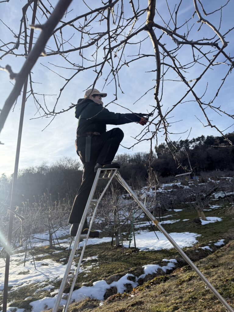 1本、太めの枝を切るだけでも、色々考えて切るのでりんごの木1本の作業に時間がかかるようです😊