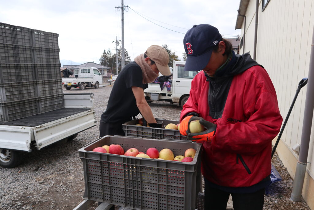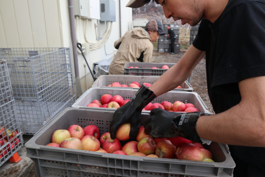 一箱一箱しっかり確認し、悪くなっているりんごが無いか確認しています😊