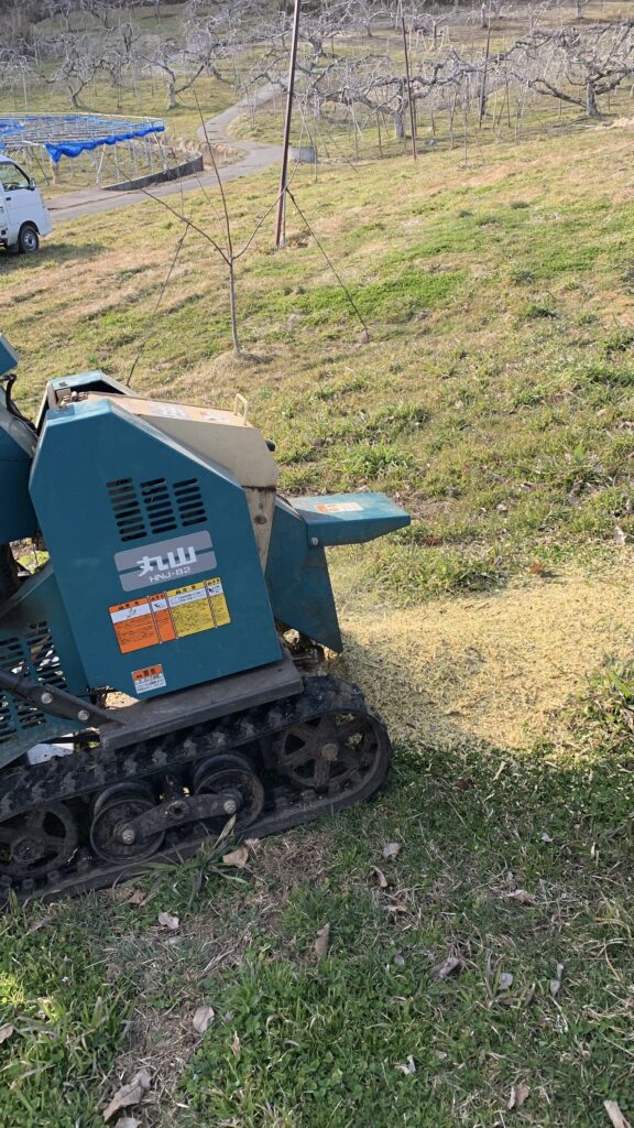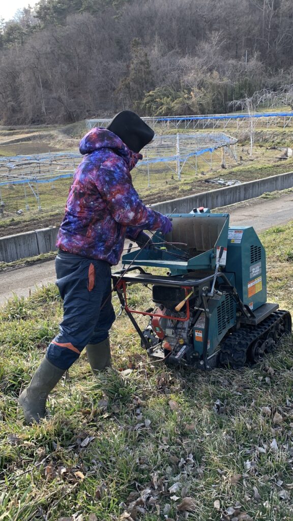 剪定作業がある程度進むと、剪定作業で出た枝集め・チッパー作業があります😊